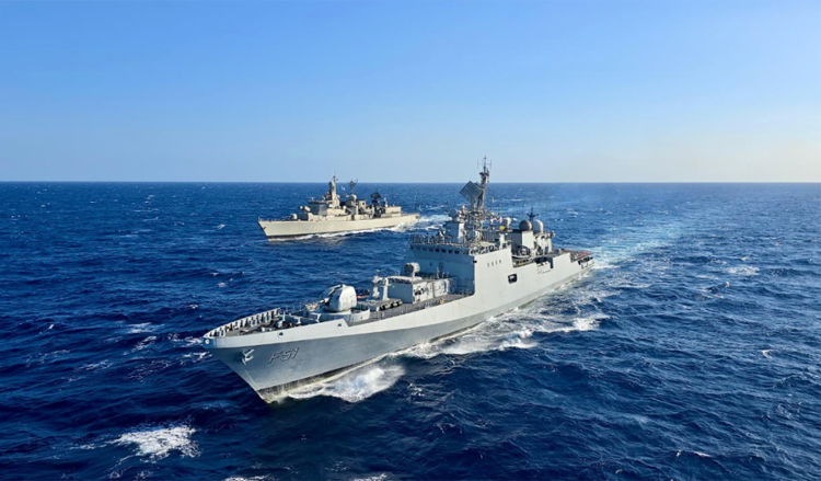 The sea phase witnessed complex maritime manoeuvres and tactical exercises between units of both navies, which included night VBSS operations, replenishment-at-sea procedures, joint Anti-Submarine Warfare, coordinated gun firing and cross-deck helicopter operations to enhance interoperability. These exercises not only validated the professional skills of both navies but also underscored their ability to operate jointly in challenging maritime scenarios.