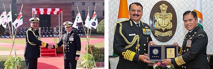 Admiral Muhammad Ali, Chief of Staff of the Indonesian Navy, is on an official visit to India as part of the high-level delegation accompanying his Excellency President Prabowo Subianto, the Chief Guest for the Republic Day Parade 2025. During his visit, Admiral Muhammad Ali and Admiral Dinesh K. Tripathi, Chief of the Naval Staff, held bilateral interactions to deepen maritime cooperation and strengthen ties between the two-close maritime neighbours.