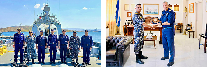 During the harbour phase, personnel of both navies engaged in a wide range of activities aimed at fostering mutual understanding and synergy. Key events included cross-deck visits to strengthen operational familiarity, professional interactions between the crew and a pre-sail conference conducted onboard HS Themistokles, Elli class frigate of the Hellenic Navy. During a cultural exchange onboard, the ship hosted Rudrendra Tandon, Ambassador of India to Greece, Commodore Spyridon Mantis, Commander, Salamis Naval Base and senior officers of the Hellenic Navy and their families. The event showcased India’s rich traditions and strengthened bonds between the two maritime forces. Additionally, the ship’s crew visited the Sacred Rock of Acropolis.