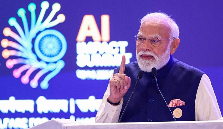 Prime Minister Narendra Modi addressing the gathering at the Opening Ceremony of India AI Impact Summit – 2026 at Bharat Mandapam, in New Delhi on February 19, 2026.