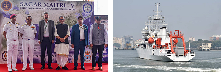 INS Sagardhwani, India's oceanographic research vessel under the Naval Physical and Oceanographic Laboratory (NPOL) of DRDO, was flagged off for the fifth edition of the Sagar Maitri (SM-5) initiative from Southern Naval Command, Kochi on January 17, 2026.
