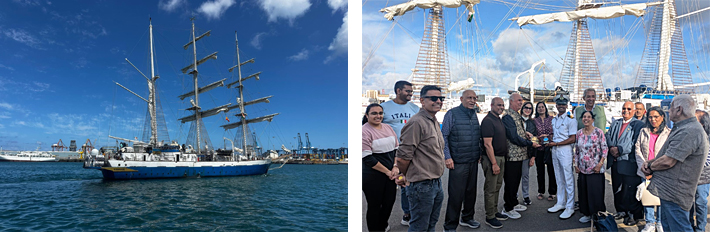 During the port call, the ship was open to visitors, drawing large numbers from the local community and the Indian diaspora. Showcasing India's proud seafaring legacy, the visitors were provided a guided tour of the ship, sharing invaluable experiences of ocean sailing and bonds of friendship across the ocean.