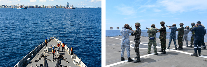 On arrival, G. Balasubramanian, High Commissioner of India to Maldives, visited the ship and interacted with the multinational crew. A range of professional and social interactions and sporting engagements are planned during the port call aimed at fostering closer cooperation and camaraderie. A Passage Exercise (PASSEX) with the MNDF Coast Guard is also scheduled upon the ship's departure.