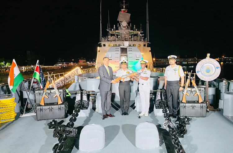 The port call coincided with the visit of Vice Admiral Krishna Swaminathan, Flag Officer Commanding-in-Chief, Western Naval Command, to Kenya. INSAS rifles and ammunition were formally handed over by FOC-in-C, West to Major General Paul Owuor Otieno, Commander of the Kenya Navy, during a formal ceremony onboard the ship.