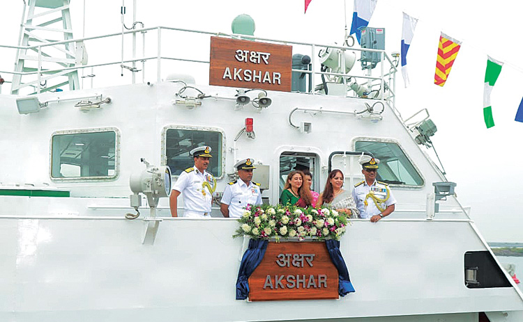 Indian Coast Guard Ship (ICGS) Akshar, the second in a series of eight Adamya-class Fast Patrol Vessels (FPVs), was commissioned at Karaikal, Puducherry on October 4, 2025. The 51-metre-long vessel has been designed and built indigenously by Goa Shipyard Limited. With over 60 per cent indigenous content, ICGS Akshar stands as a testament to India’s growing maritime capabilities under the Government’s ‘Make in India’ initiative.